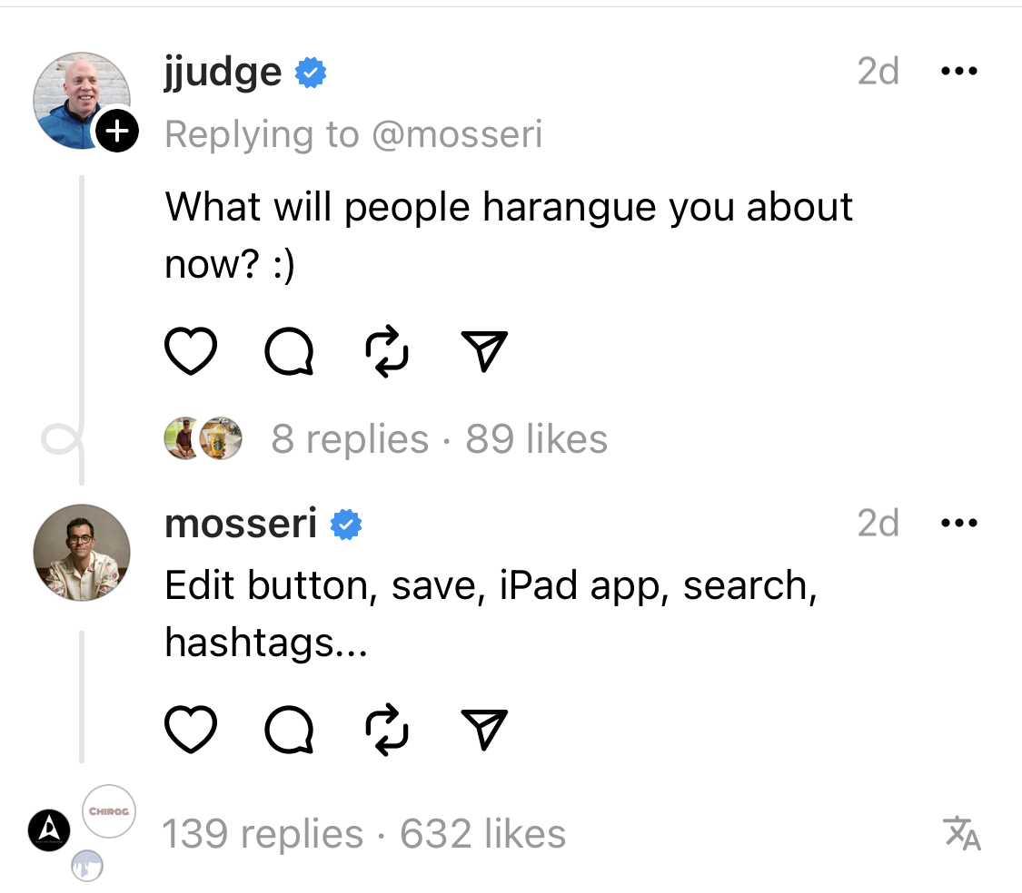 I think they wanted to be more or different than just a twitter lookalike. It's very much based on instagram which has it own type of users. It's got something that twitter doesn't have right now in moderation and I do want that.There was a golden moment to take a lot of Twitter users and it’s been thrown away.