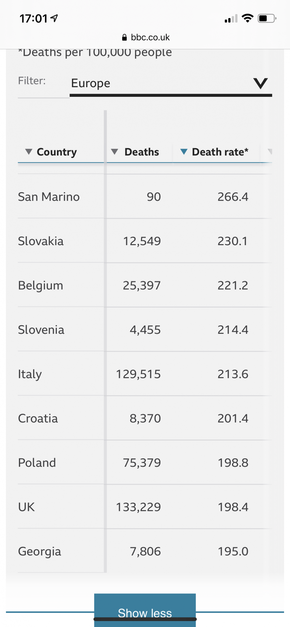 And despite all these huge successes you assume, the figures in the UK are by far the worst in Europe. It's not even close, they really are BY FAR the worst.