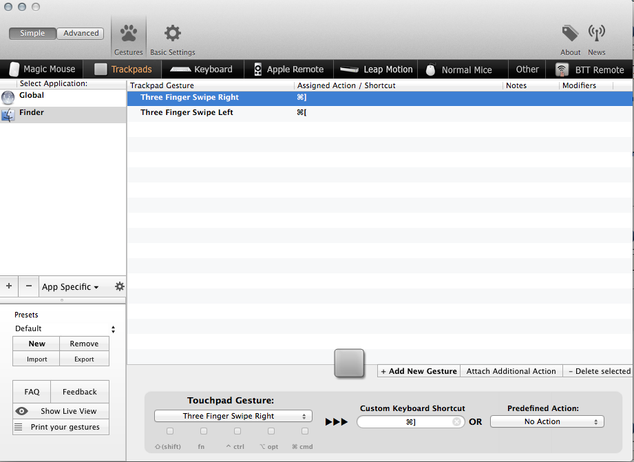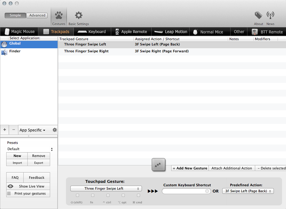 Oh and three-finger swipe left/right to change pages and go back/forward in browsers work fine for me (no BTT).