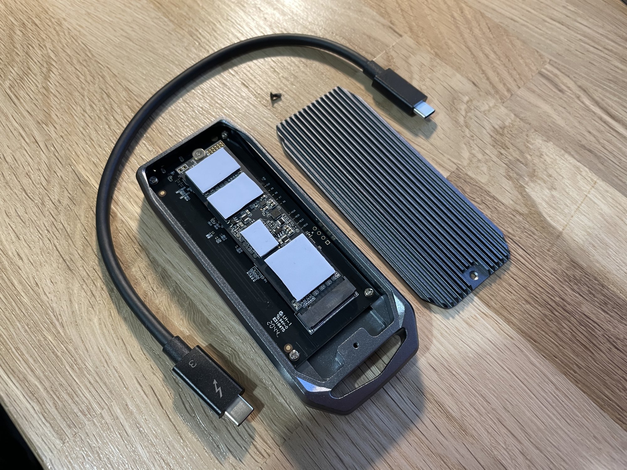So far, I only know of stationary Thunderbolt 3 drives (mainly in the form of full-size PCIe boxes with NVMe SSDs in them or large RAID systems that weigh upwards of 5 kg), but I am wondering, whether there's such a thing as an M.2 NVMe SSD enclosure that uses Thunderbolt 3 to connect to the computer.