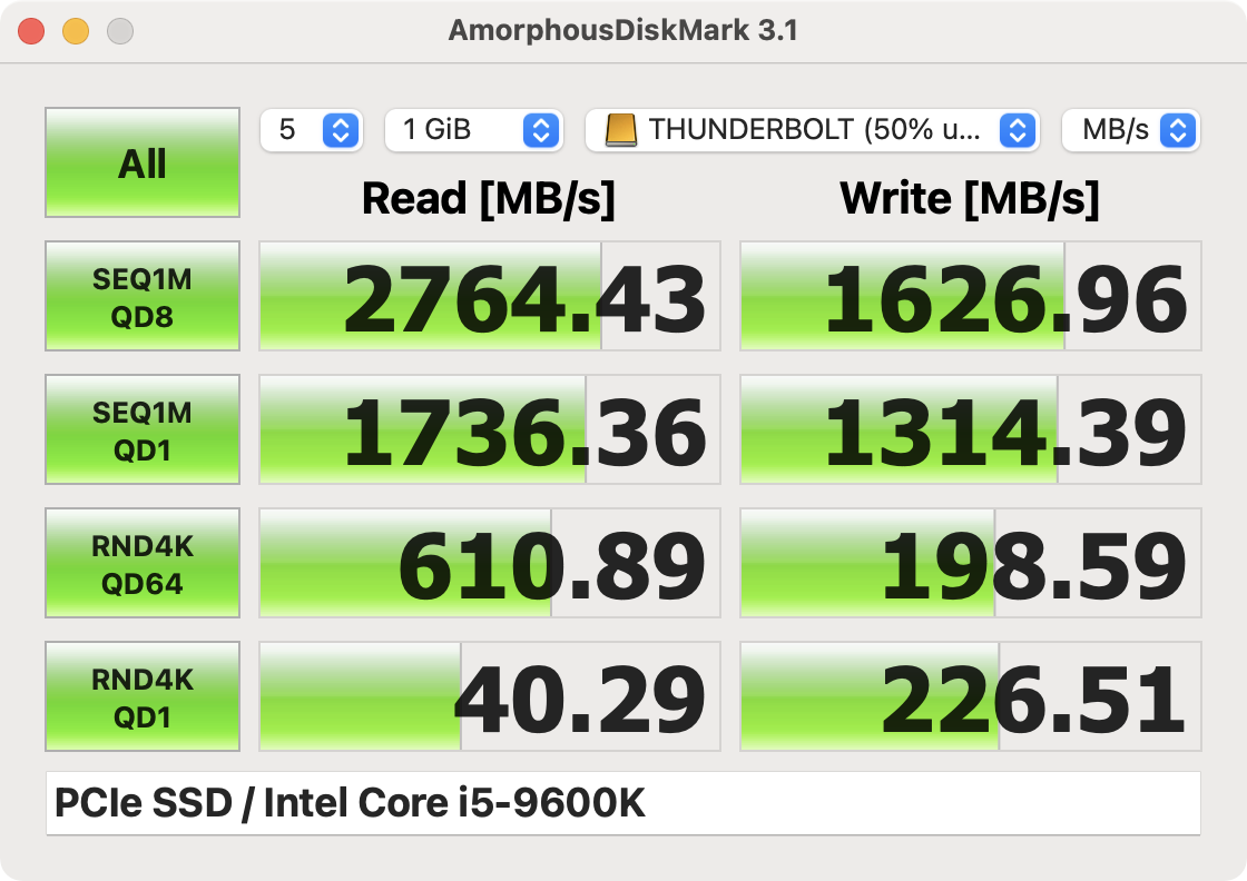 One thing I haven't seen benchmarked is multiple Thunderbolt NVMe devices connected to the same Thunderbolt port of an integrated Thunderbolt controller (Ice Lake, Tiger Lake, Apple Silicon) since integrated Thunderbolt controllers don't use real PCIe (they are inside a CPU so it doesn't need to be limited by PCIe) they won't necessarily be limited to 3500 MB/s. So in this setup while the max of each Thunderbolt NVMe device will be ≈2800 MB/s, they might have a higher total up to 40 Gbps.