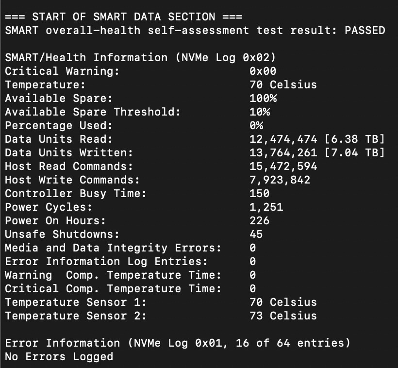 Here's my smart data from both my internal Apple Mac mini M1 nvme as well as Kingston KC3000 in a Acasis TBU401.