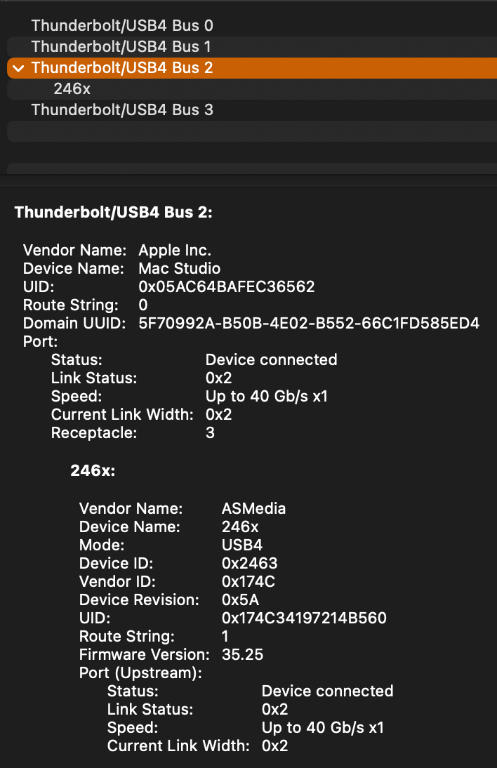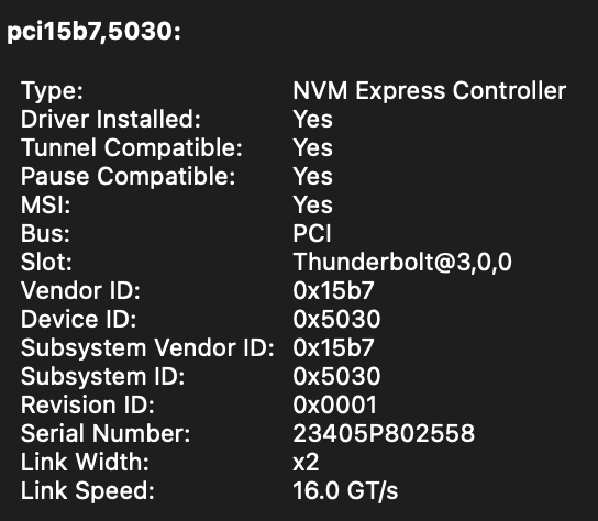 Additionally, it's only connecting at 8 GT/s and link width x4, which means its definitely not an ASM2464.