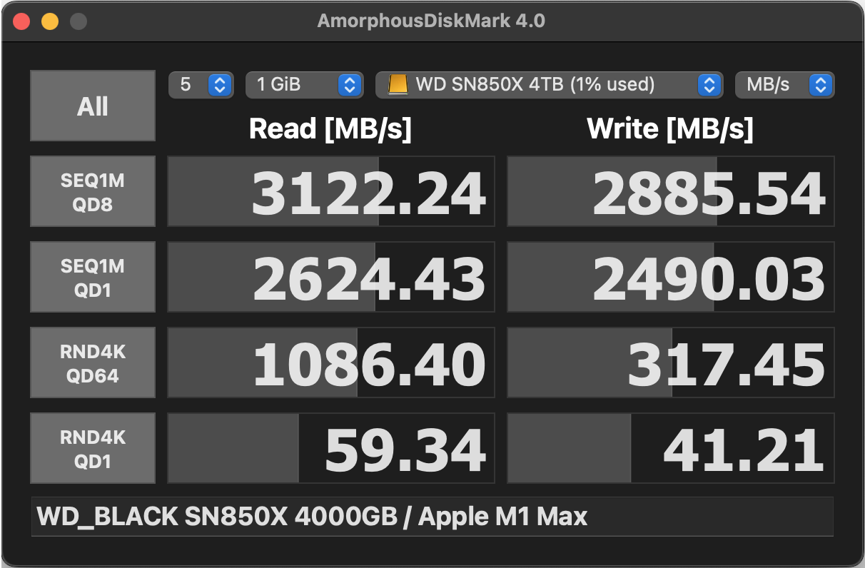 Got the Jeyi and an SN850X yesterday based on this thread to use with my 2021 MacBook Pro. Trying to determine if I am getting the best possible speed with this combo; test result is attached. Mostly it comports with other reports here but the RND4K result seems significantly lower than what others have. Any ideas? I've tried every version of the firmware on the Jeyi site and got almost identical test results each time.