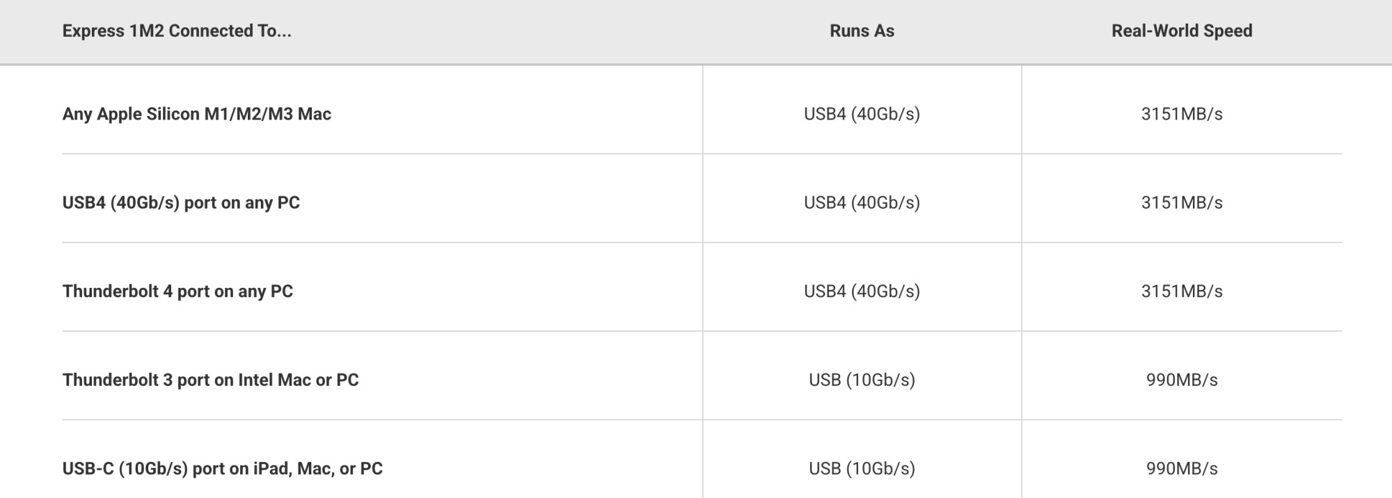Thunderbolt 4 is effectively a superset of USB 4. Thus, if a Mac supports Thunderbolt 4, it also supports USB 4.Are you 100% sure it doesn't do Thunderbolt. In the marketing OWC make it sound like the 1M2 is also a thunderbolt 4 device but then in the specs It shows it runs on usb even on a thunderbolt 4 port.