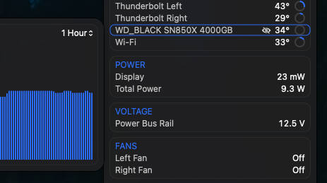 Because the Dual drive unit with 8TB SSD’s has a (super quiet) fan, it is running 5 to 7 C lower than the Maiwo 4TB SSD enclosures do. Last week I added an additional single 8TB WD 850X Black @$530 to be my external start up drive for my M2 Studio Max. For an enclosure I almost bought another K1717, but knowing the 8TB WD Black run a bit hotter, I instead decided to get an enclosure with a fan and a On/Off switch for it. I went with the Acacias 405Pro M1 at $93. This enclosure is bus powered. Read speeds are 2,8xx and Write speeds are almost identical. I chose longevity of the 8TB SSD's, by running bit cooler, vs a slightly quicker speed.