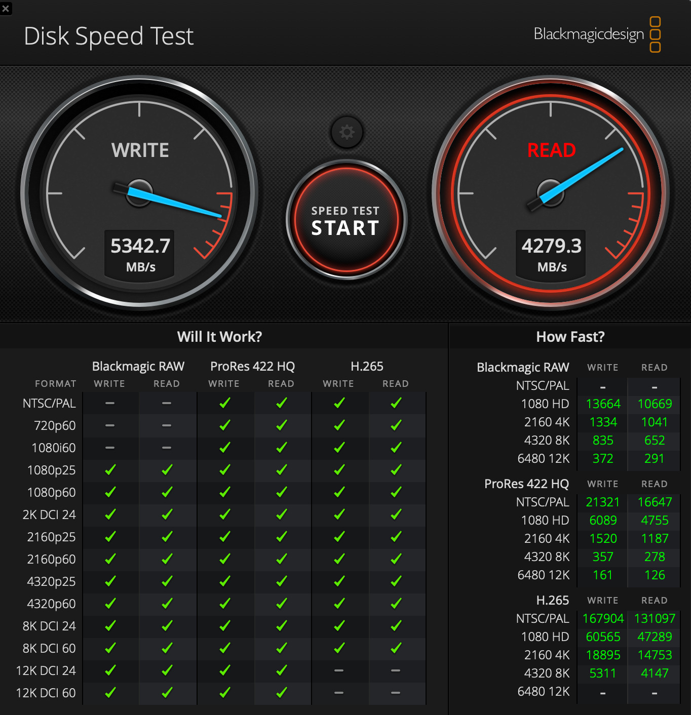 I achieved similar results as said poster, but I'm pleased as punch as they are a stone's throw from my 2TB internal SSD on BlackMagic Speedtest results. Worse than the NVMe drives are capable of, but MUCH better than I expected based on TB/USB limitations:
