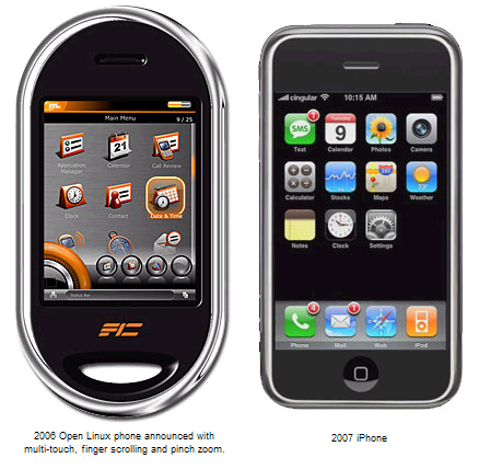 Nobody paid attention to it until the iPhone came out two months later. Suddenly reporters remembered it: Open Moko, Did They Have a Time Machine or What? (Proof that many ideas aren't noticed until a major company sells them.)