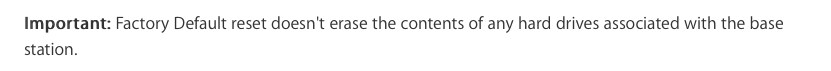 I am having some trouble with my latest gen time capsule, I am wanting to reset it to factory defaults by holding the reset button on the back for 5 seconds. My question is will this reset method wipe the hard drive inside the time capsule?