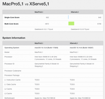 I to bought a 3,1 Xserve with a single cpu board. Now updated to a dual cpu board that i have flashed and installed two x5690 cpus in alongside mojave. Only downside so far is not being able to use 4/12 ram slots. But i think its a fair tradeoff considering i can boot from nvme and use apfs as well as run 6 core cpus.