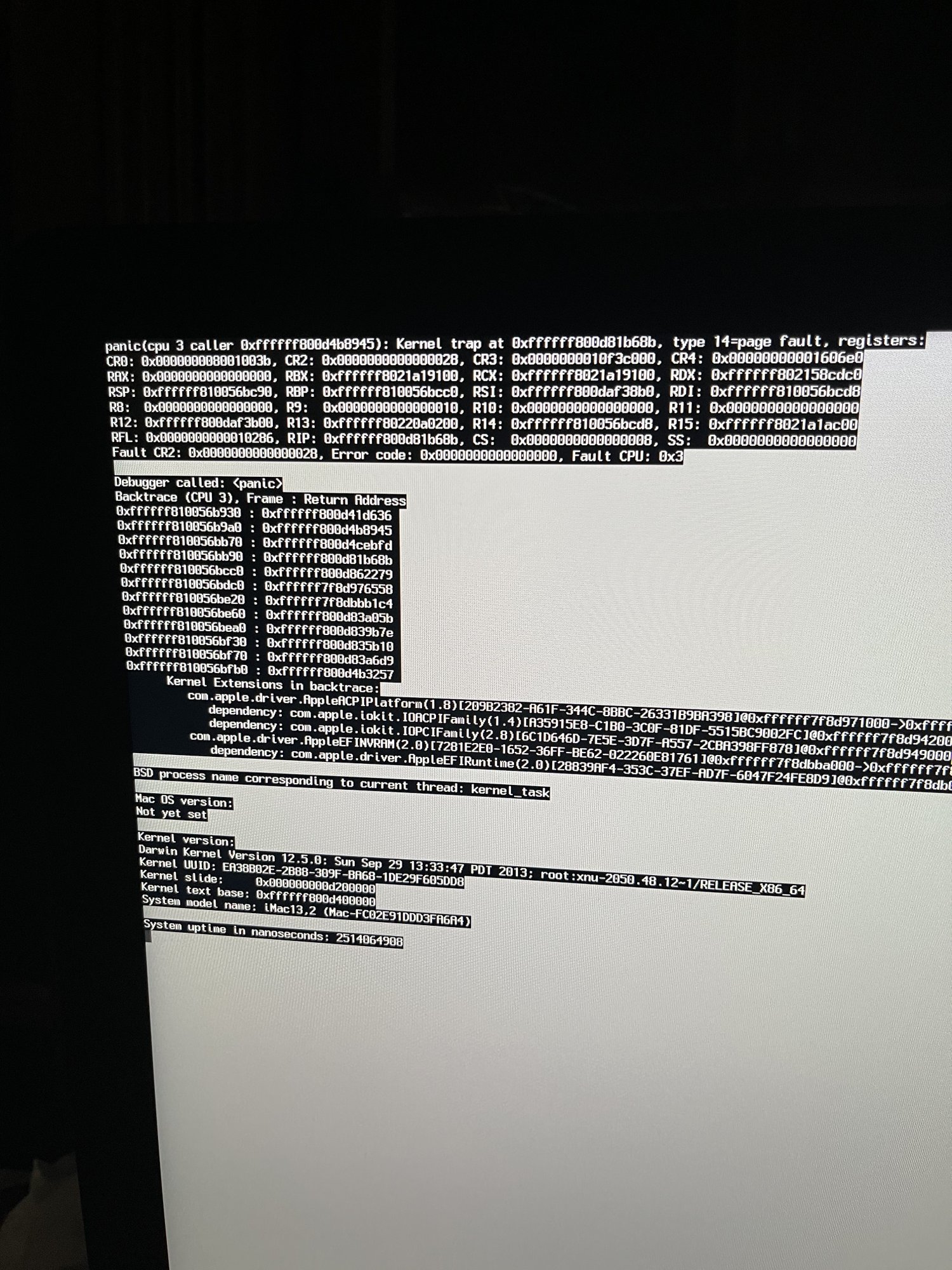 Ok, got a newer imac 27" late 2012 since my 2009 died. Was excited when I got the computer in, started it, click to bring my stuff from a drive, selected my time machine backup and 6hrs later it was done and had a few questions, then it said... you are ready to use your computer click continue. When I clicked continue the background was visible and the mouse but nothing else. Waited a while in case it was doing something but nothing happened. I figured I would shut it down and restart. When it booted it had all sort of codes on the screen (see picture).