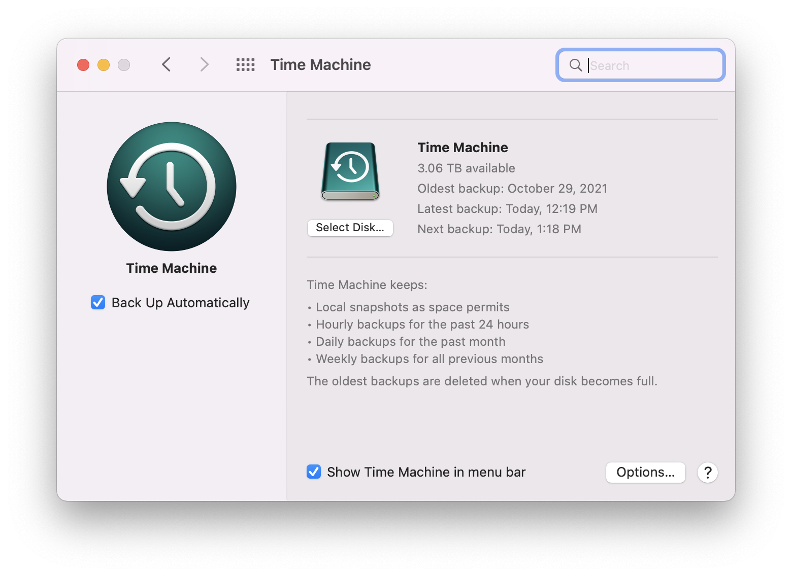 Anyway, what I discovered was, by default when you setup a new TM disk, Apple also adds encryption for extra protection, which under Monterey really slows things down. So I reformatted, dismissed the notification for setup, and manually set up TM in the preferences pane. This time it's not encrypted, and while it did take a little over a day to complete the first backup, which was probably normal in these circumstances, it's been running normally since. I just checked this morning before posting, and the latest backup was reported done at about 5:08 AM this morning.