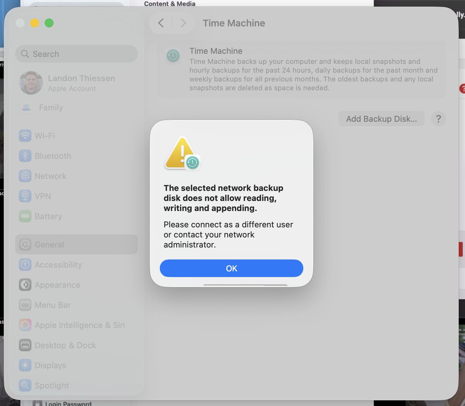 Is anyone having issues with Time Machine? I am having issues setting up a shared external drive on my Mac Mini M4 to use as a time machine backup location, but also want to share the drive for backing up my MBP M4. I have enabled all the sharing options and enabled it in the sharing menu for Time Machine use. But the only way I can get it to work is if I partition the drive into 2 separate drives and dedicate one partition to each machine when sharing it on the mini.