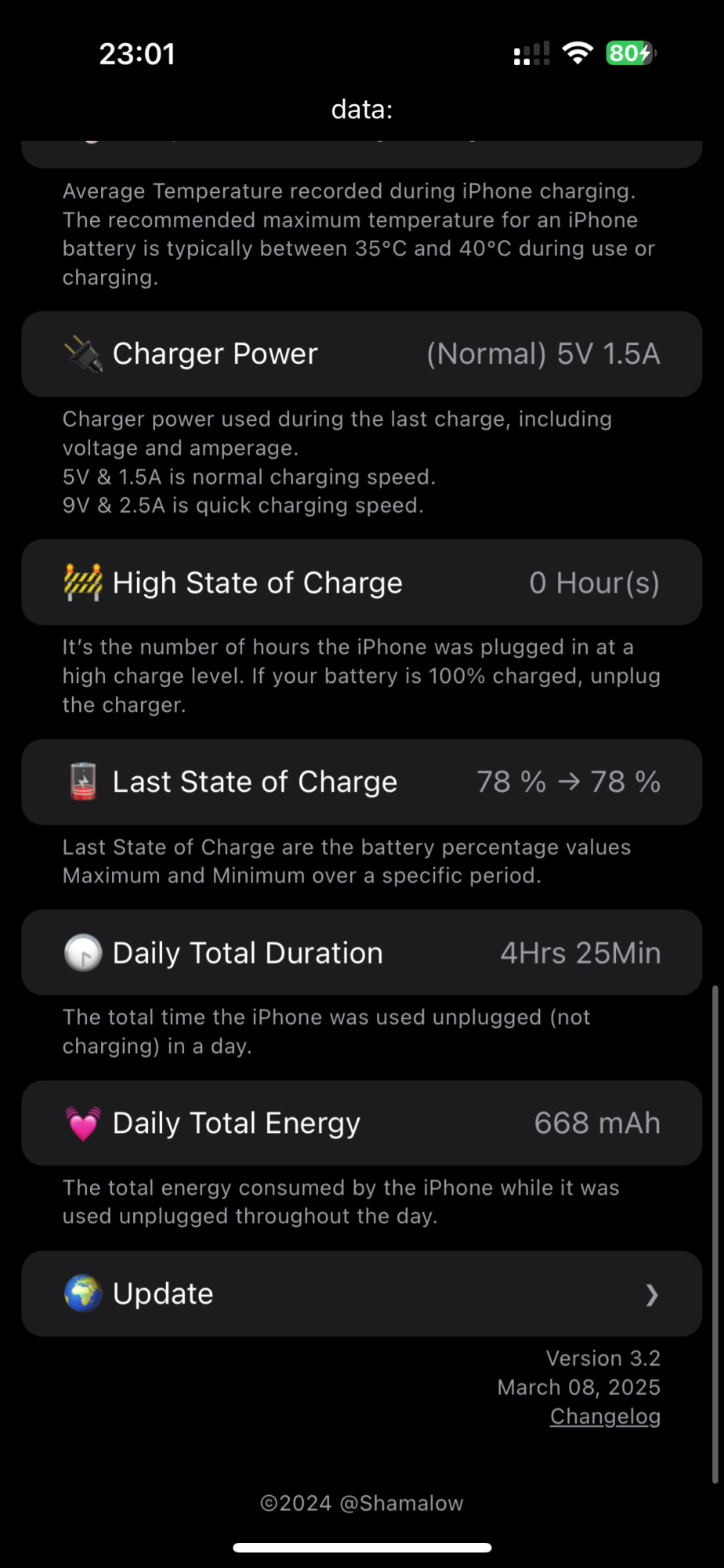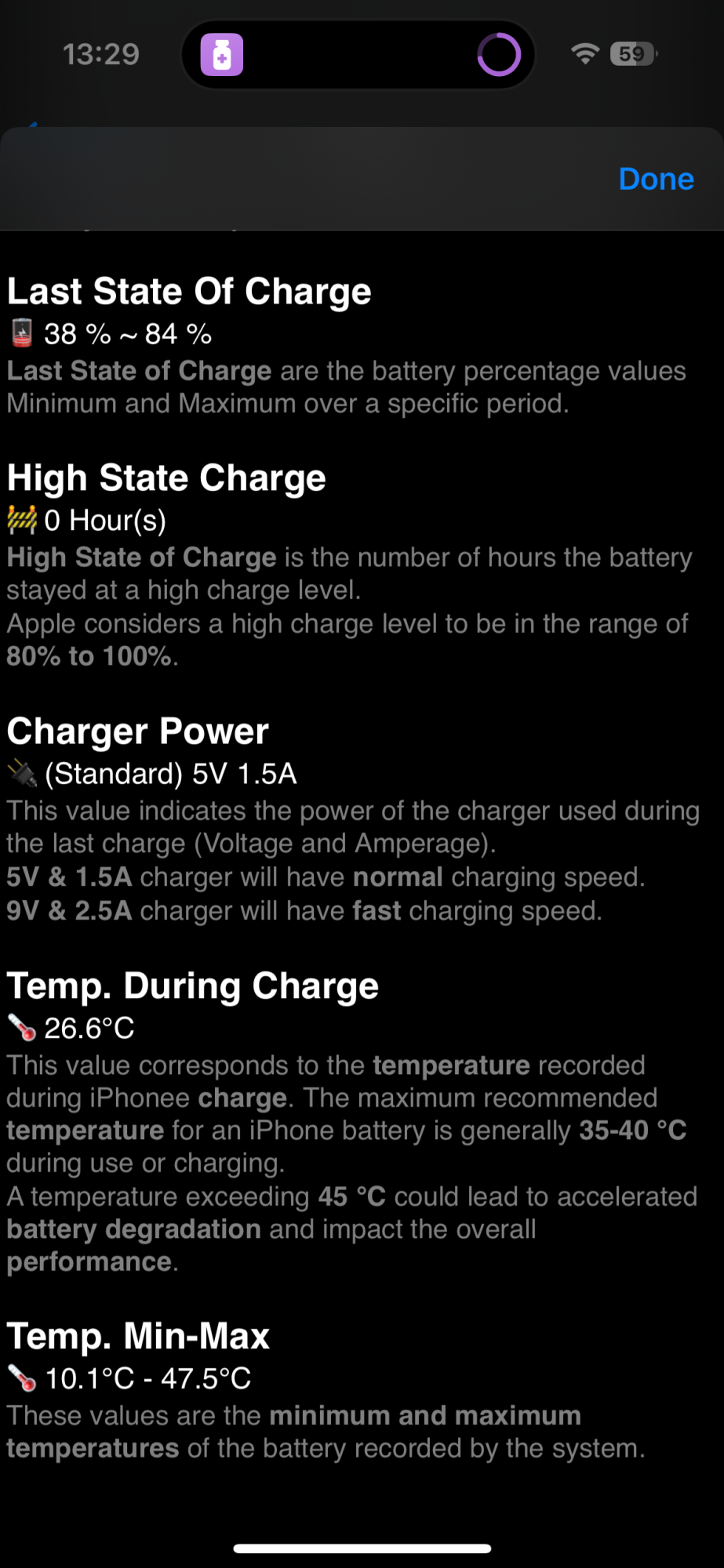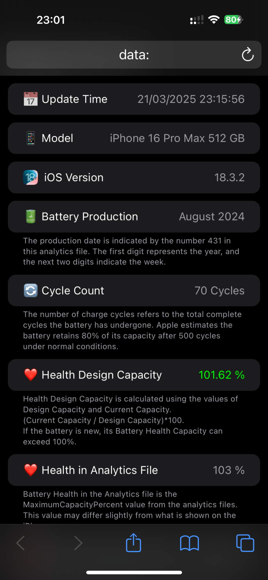 I share my shortcut that displays battery informations from analytics files.