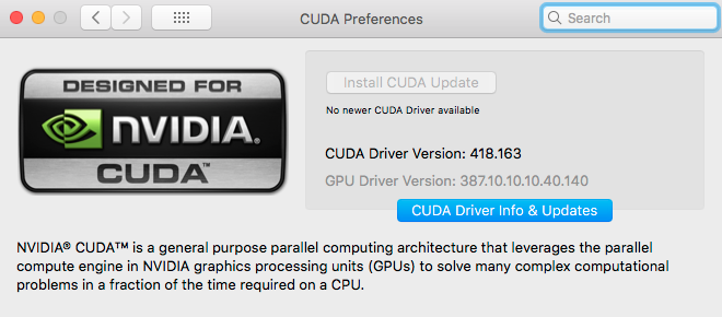 Cuda and latest NVIDIA drivers are installed and seems to be recognised.