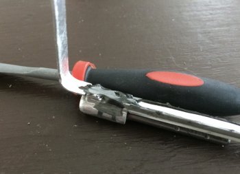 Now the color… Found a paint in spray can that almost matches the « pearl » color of the Ti hinges. It’s called « Vanille » (Vanilla) and it’s satin.