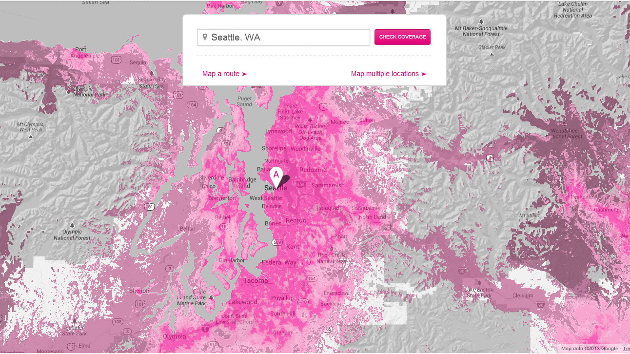Since Seattle and Bellevue (T-Mobile's headquarters) are close, they both offer excellent coverage.