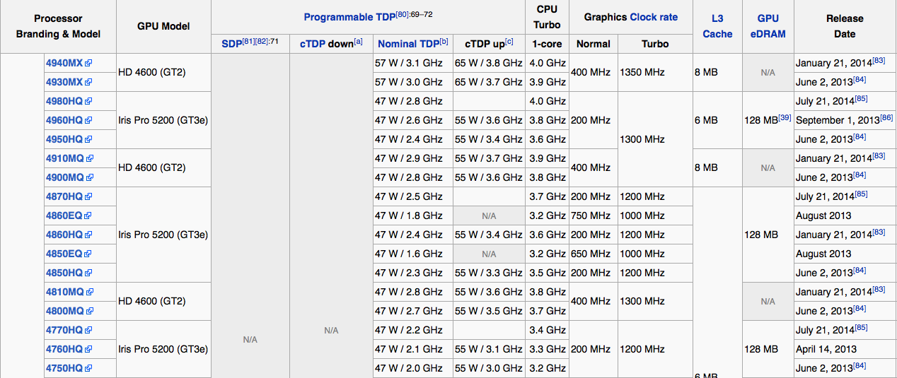 Give me the whiners over the Apple apologists any day of the week and twice on Sundays. Apple has had plenty of time and plenty of mobile quad core i7/5200 chips to choose from. Here they are: