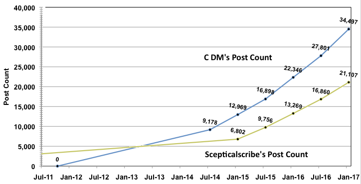 [doublepost=1483833709][/doublepost]Actually, in my own case, I am slightly surprised that I managed to sustain such a high post rate for the entire past six months, as I was away for the best part of two of the months, and posted a bit less at that time.