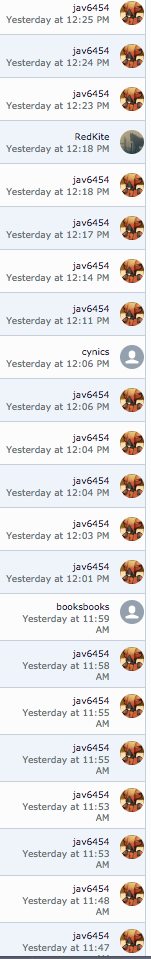 I'm a member of another forum, the first one I joined some time in 2001. One particular user there joined around the same time. She was a high volume poster, much like the reference to madjew and racked up a lot of posts.But, reading your references to him, it did strike me that this was an interesting illustration of the strangeness of time; for, I have been a member of the forum for the best part of a decade, - which is quite some time in an online environment - and I never remember seeing him make a post.