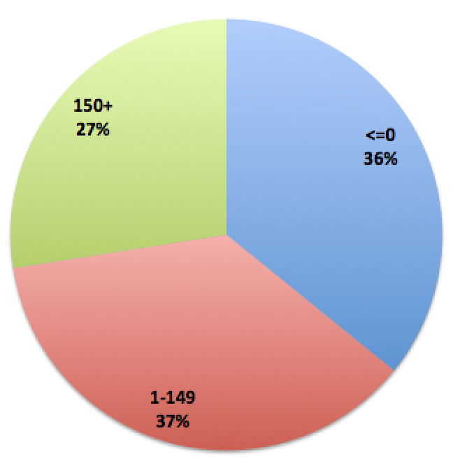 The "<0" bin has a few members whose post-count actually decreased over the 6-mo interval. This can happen when a member has posted in a thread that's later moved to an uncounted area, such as Wasteland. This doesn't mean the member isn't active, only that they have a post that was previously counted moved to an area where it's not counted.