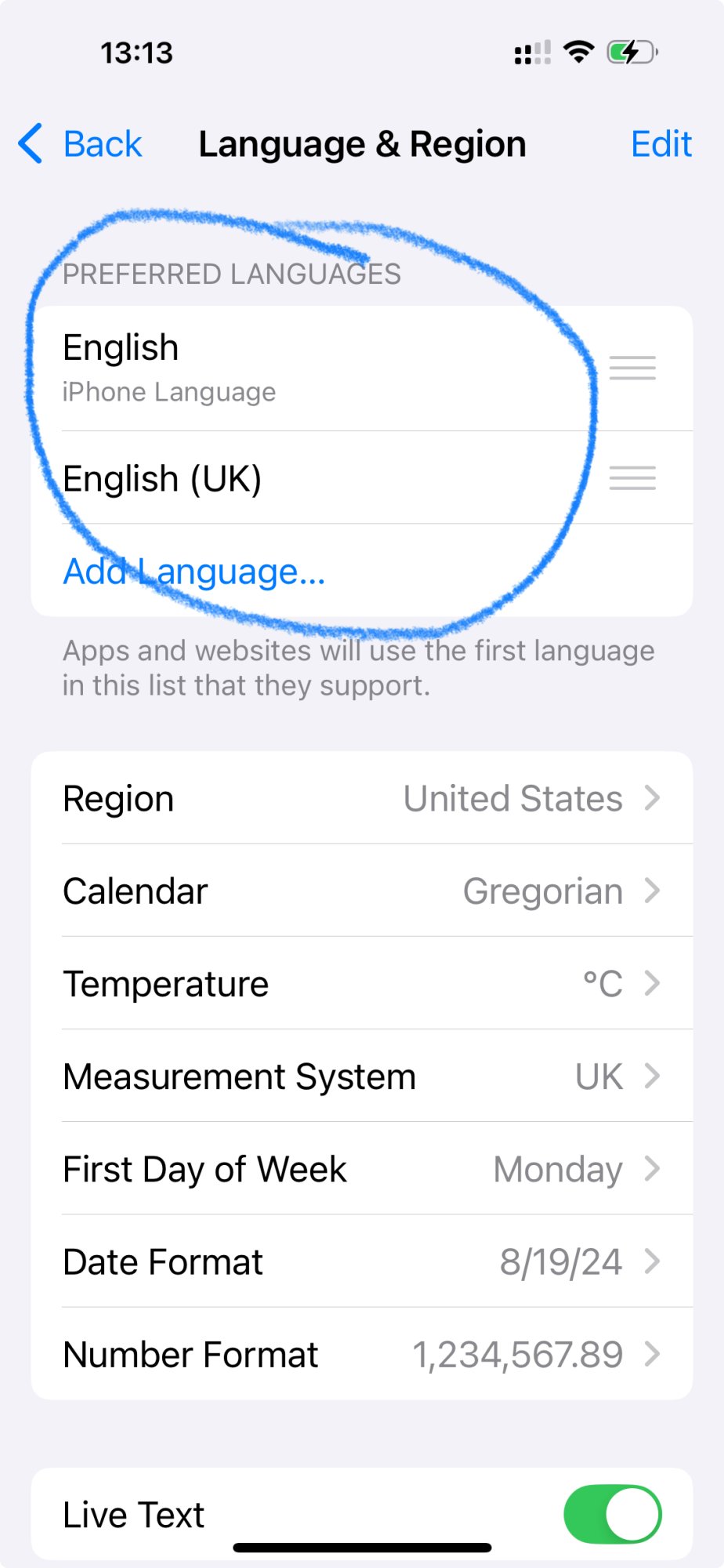After reseting keyboard and adding two lanhlguages , restart your phone and just use it.