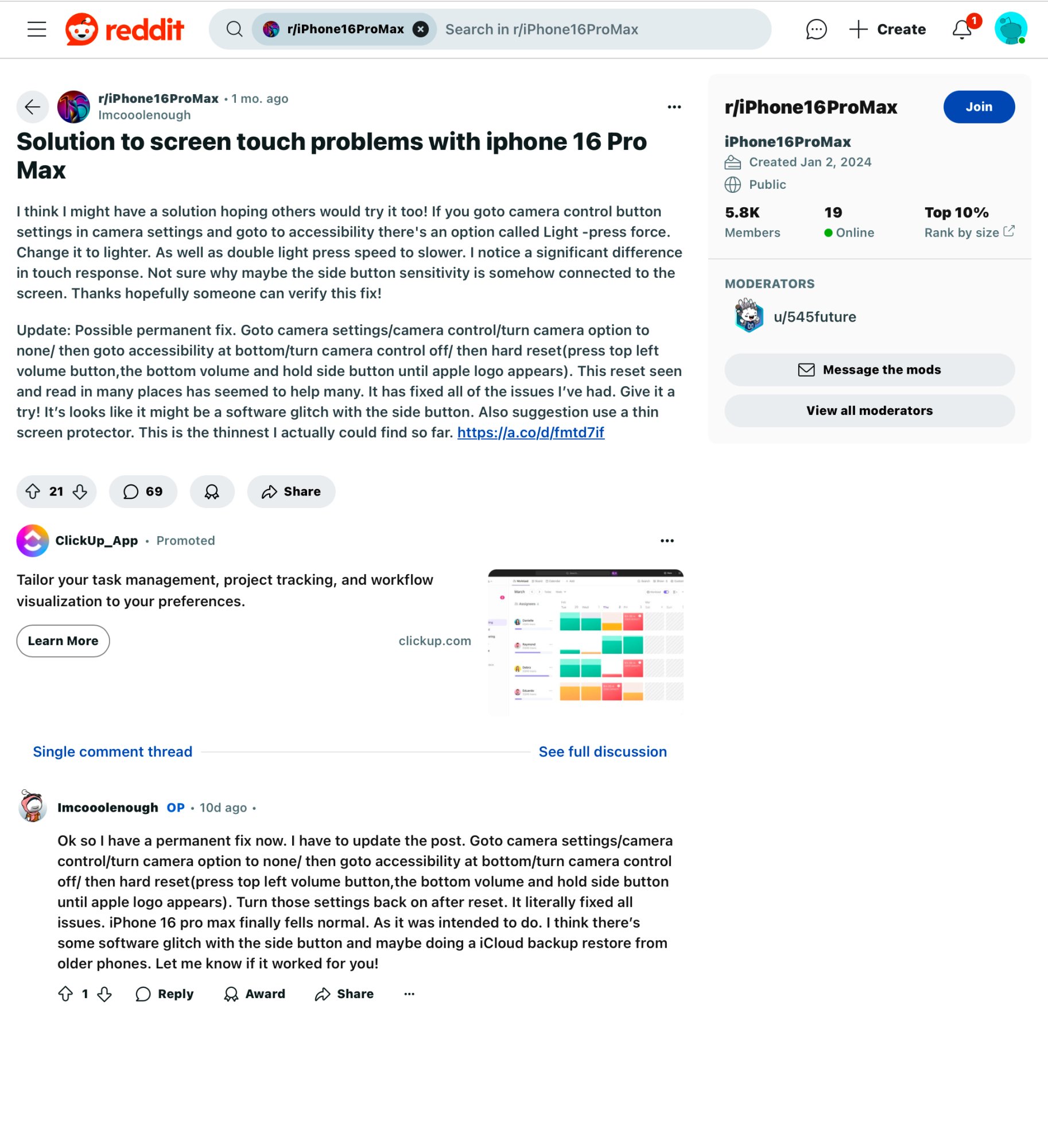 So, do u have a touch problem?16 Pro Max here battery built in October. With or without screen protector makes no difference for me. I have big hands so no issue with multiple points of contact. Ran diagnostics with apple support and they said a defect was detected so I’m exchanging for replacement. Wonder if I’ll get something better or worse. We’ll see.