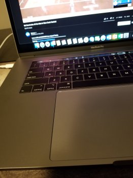 It seems like there's a bright scratch on the top left of the touchpad on this new MacBook Pro that I just opened today. It is only visible from an angle in a lit room. The problem is that it is very distracting and is most prevalent from the angle that the laptop would normally be used from. Is this normal?