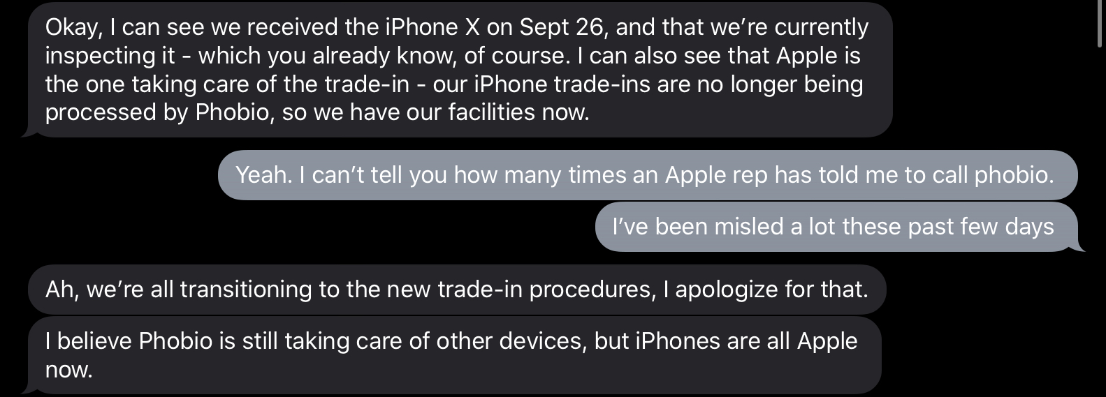 Yeah I’ve been told so many different things by so many advisors. I guess cause Apple is taking over this year, they aren’t fully aware. Phobio still does trades, just the gift cards. Which I am shooting myself in the foot cause had I known that, I would’ve went that route instead. I had a great experience last year with my watch trade with them and they are really quick. Got my credit in two days I think. I would’ve used that gift card on Powerbeats pro or the Series 5 just cause. This credit stuff is taking WAY too long for our liking.
