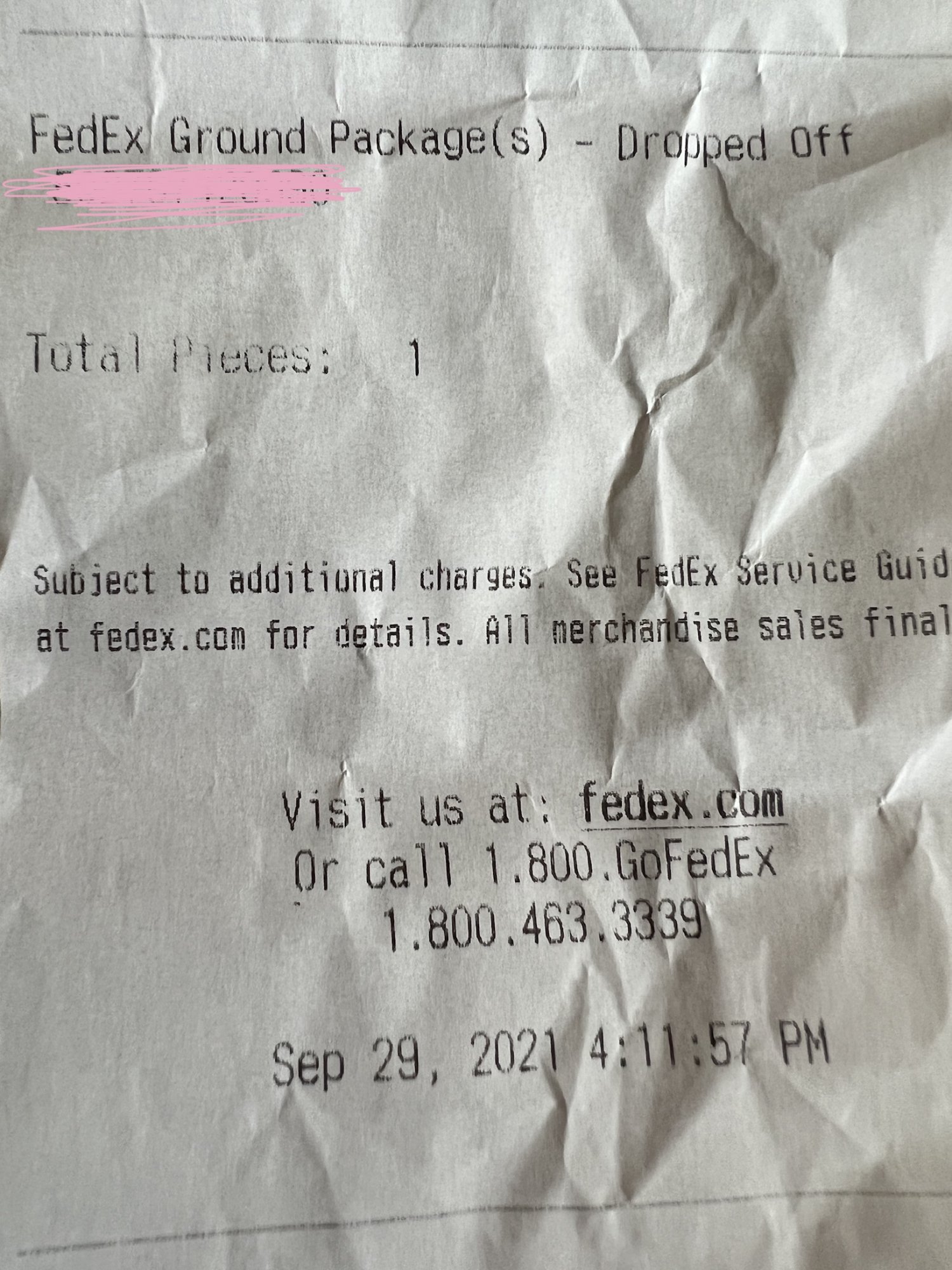 by the way, I dropped off the box to the fed ex counter in person and got a receipt. Not sure that will help. Apple did ask me if I video taped myself packing it. Seriously? Is that what we all have to do now? I told them, no, I followed the instructions for trade in exactly as written. Geez.