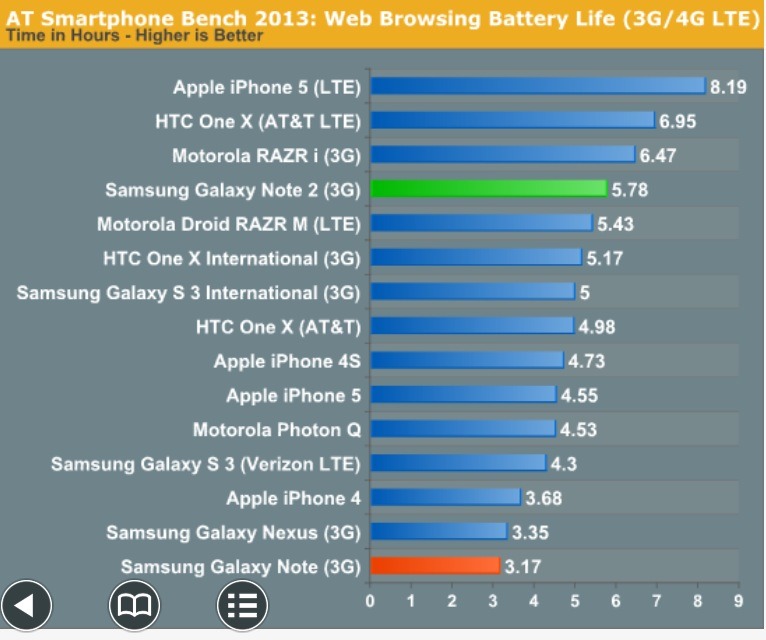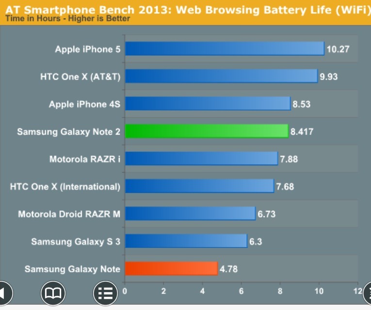 If the Razr Maxx gets amazing battery life with a 3300 battery then why wouldn't the Note 2 also get exceptional battery life when in REAL WORLD the phone spends most of its time with its screen off? Or are you saying that the Maxx also gets poor battery life and the iPhone is the best at everything?