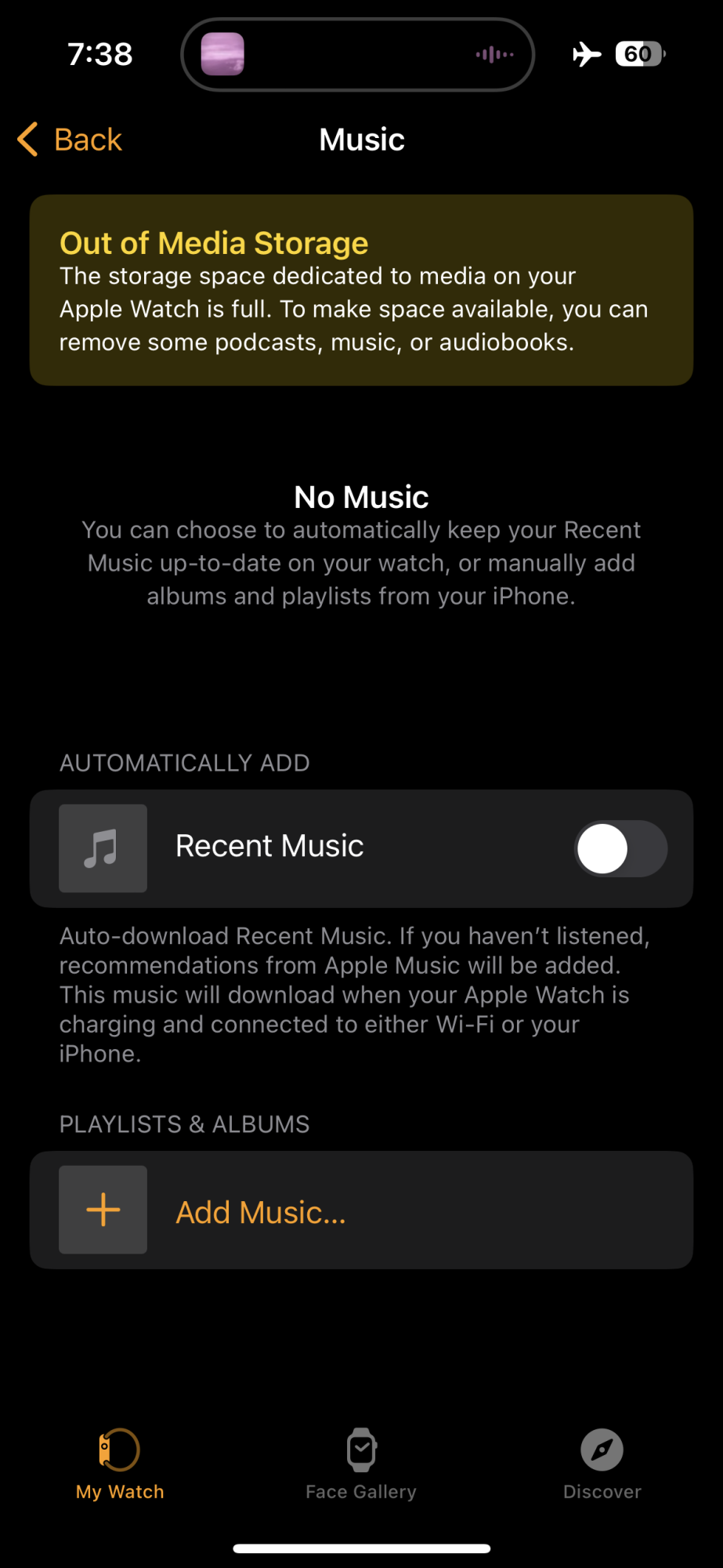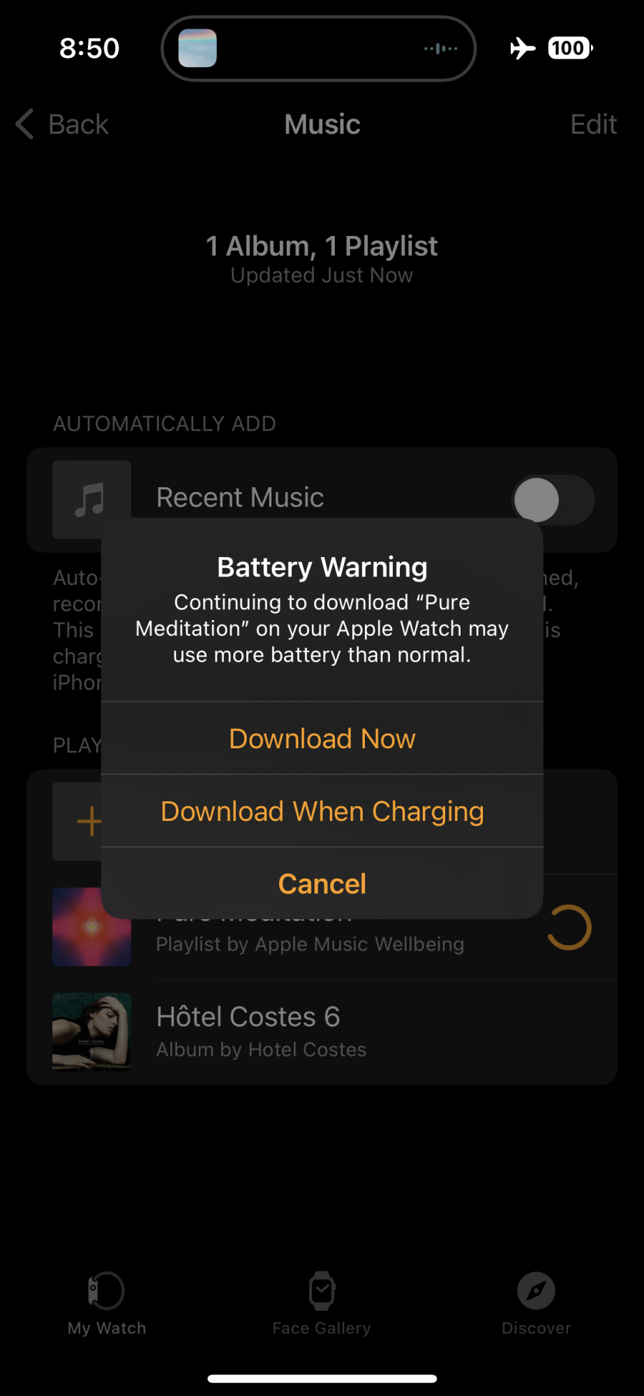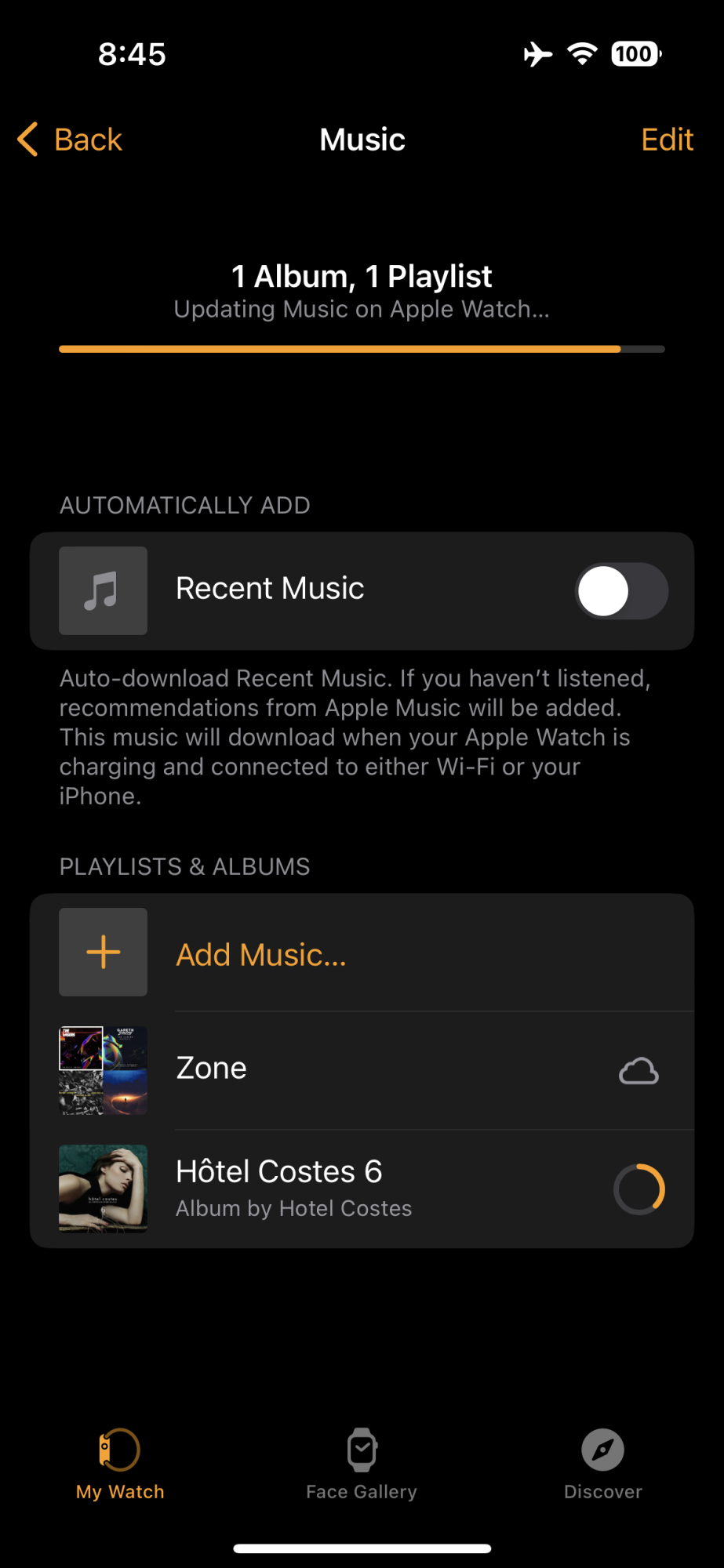 In addition, albums that I download will begin downloading and will show up on the Music screen of the Watch app, but at some point disappear no longer to show that it is an album either being downloaded or already downloaded.