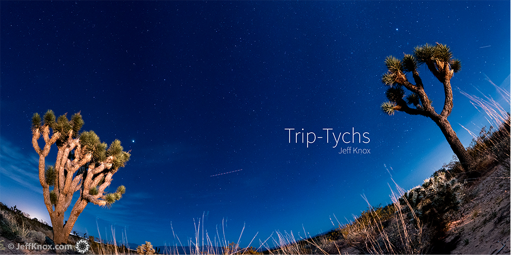 All of the images are polyptychs that consist of two, three or four panels. The large panels are designed to be 24 x 36 and the smaller panels are 24 x 16 inches. The "Trip" comes in with the distorted perspectives.