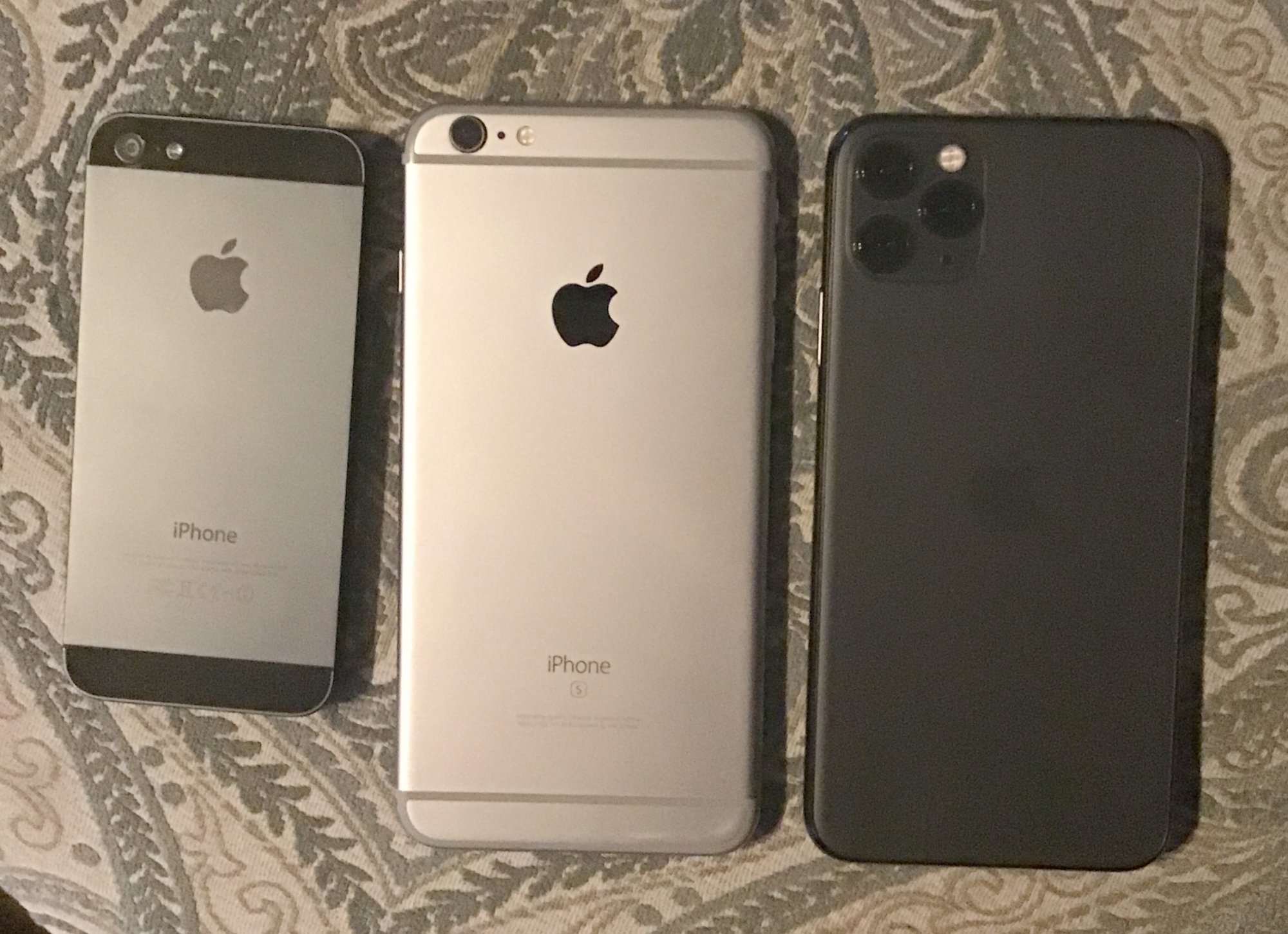 Below is my iPhone 5, my iPhone 6s+ and my iPhone 11 Pro Max. How is the 11 PM Max camera a 'small, elevated section' compared to my iPhone 5?