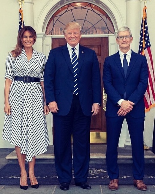 Melania Trump, Donald Trump, and Tim Cook in August 2018