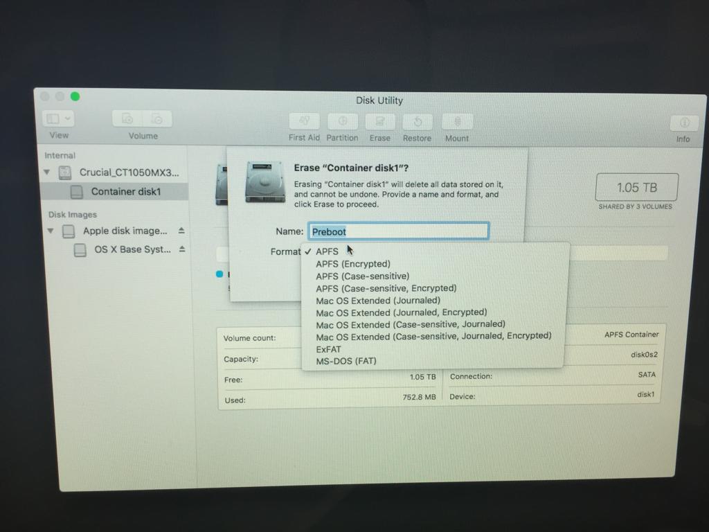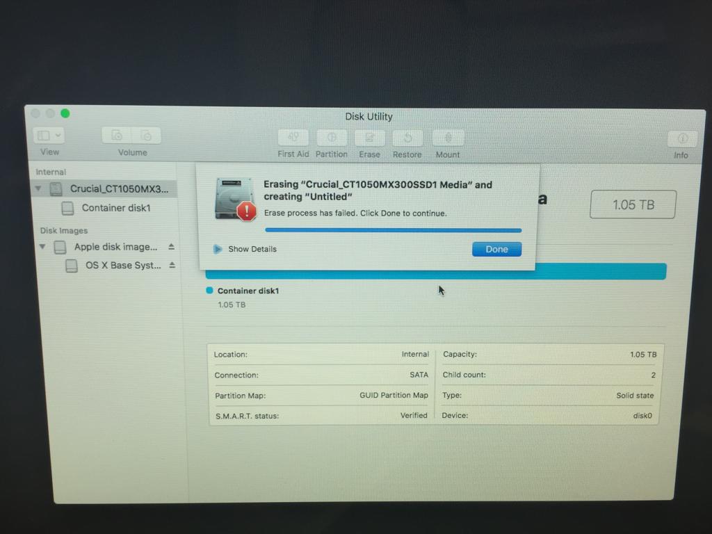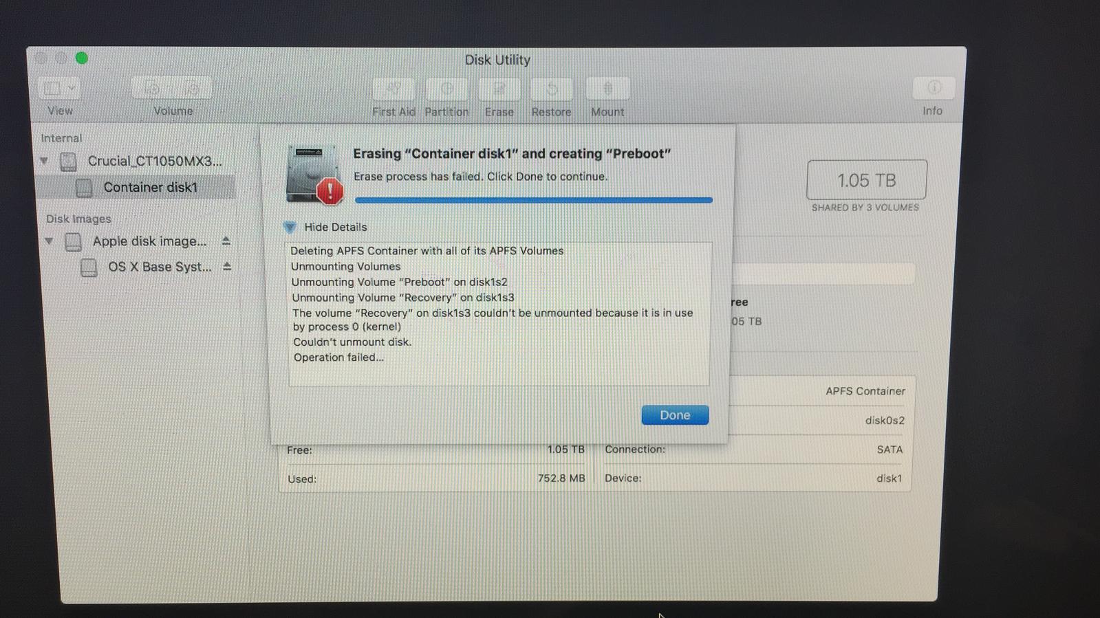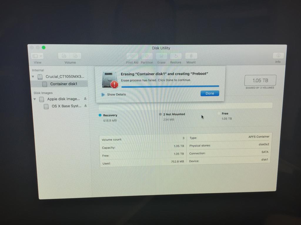 I have managed to erase the disk but when I tried to reinstall the OS, I got an error "Could not create a preboot volume for APFS". Based on what I read online, I unmounted the disk and and then tried to erase it and reformat it into Mac OS Extended (Journaled). Then I keep getting an error "Erase process has failed" I've got not idea where to go from here!!