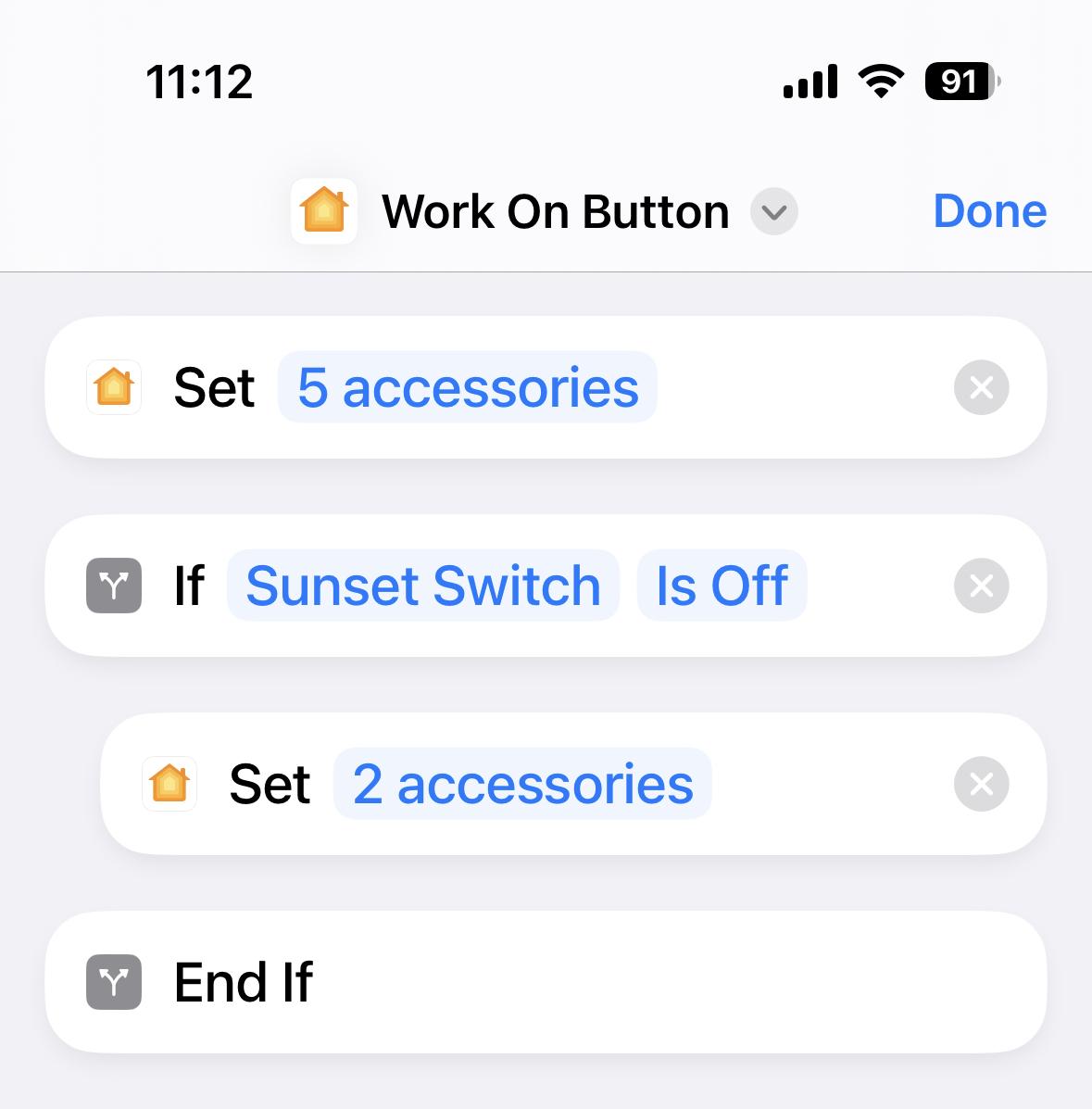 I have several remote switches that I want to use to toggle lights on and off. The only way to do that with HomeKit is with "Convert to ShortCut," but I do not seem to be able to insert an action after the If statement.