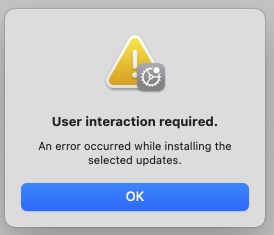 The migration from our 2013 iMac went mostly well, BUT I can't seem to get it to update. It says "User interaction required" but I don't have more context about how to update. See the screenshot below. Any advice? Thanks!