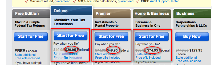TurboTax Basic, Deluxe, Premier and Home & Business Free