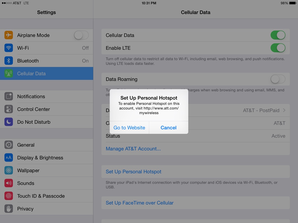 Anyone know why it says I have to turn on my hotspot for iPad. Same thing with FaceTime over cellular.