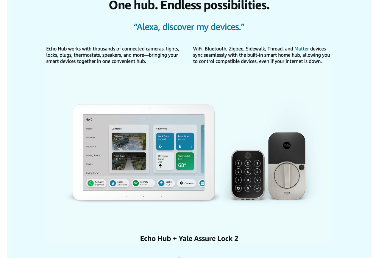 Matter devices sync seamlessly with the built-in smart home hub, allowing you to control compatible devices, even if your internet is down."