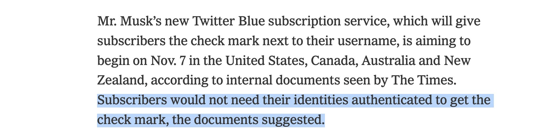 Anyone could always change their name to anything they wanted, regardless of whether they were verified or not. But before, if an unverified user changed their name to Elon Musk, it'd be immediately obvious it wasn't the real Elon Musk, because there would be no blue check. And verified users had no motive to change their names to Elon Musk, because the reason they were verified is to post as themselves. Once the new "pay for blue check" system is operational, then people who want to impersonate somebody else just have to pay $8, get a blue check, and call themselves anything they want.