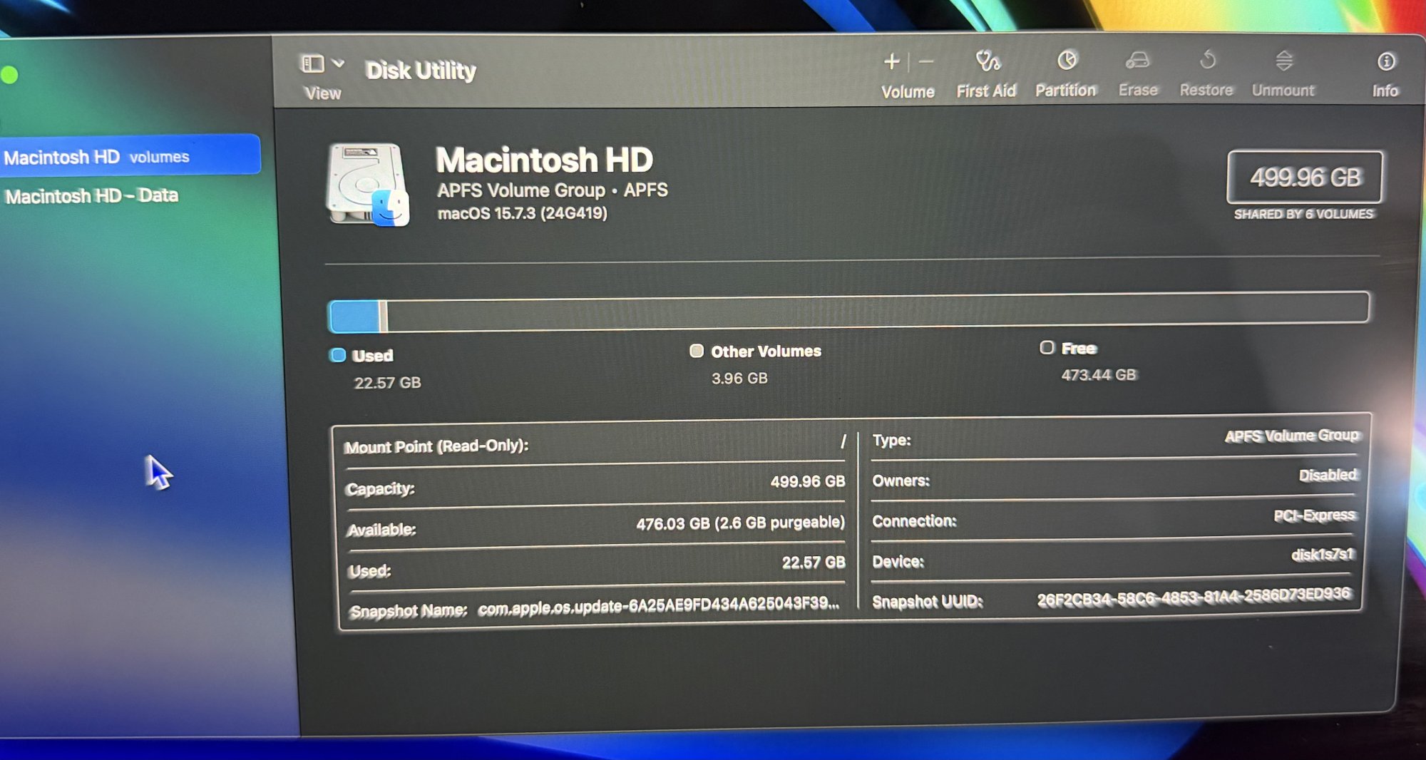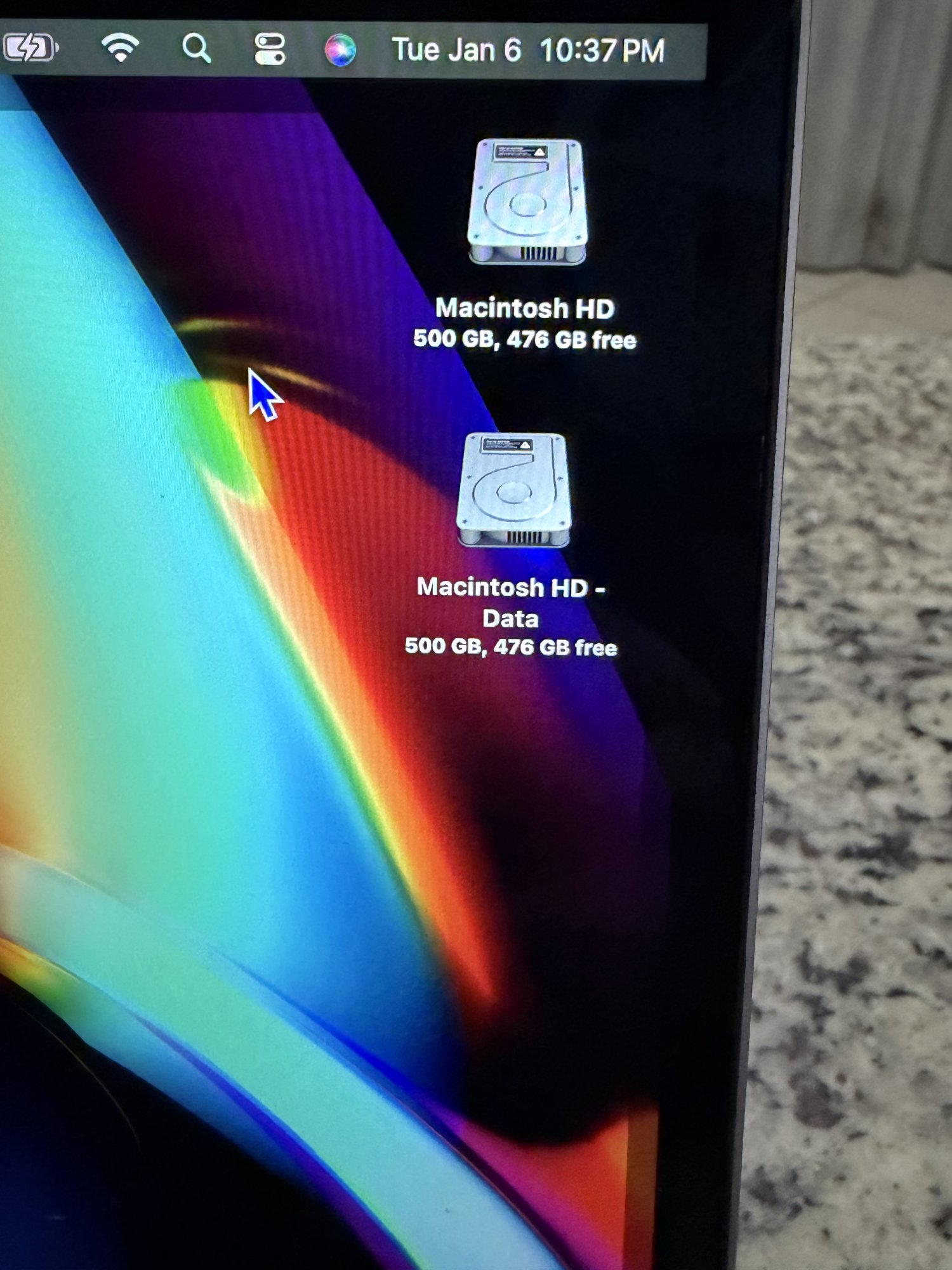 I just got the computer today. It is a 2020 13 inch Intel i7 the 10th gen version. It was on Big Sur when I got it. I put 15.7.3 on it using Mr Macintosh. Before that I erased the drive so it was clean. I just got done setting everything up how I like my settings. Shut it down and restart and that bottom one popped up after 5-10 mins. It appears to be a duplicate of my drive. In disk utility it shows it and it says there are 6 volumes shared. What did I screw up and do I have to start all over and how do I fix this. Both “drives” show all the apps and such. Thanks.