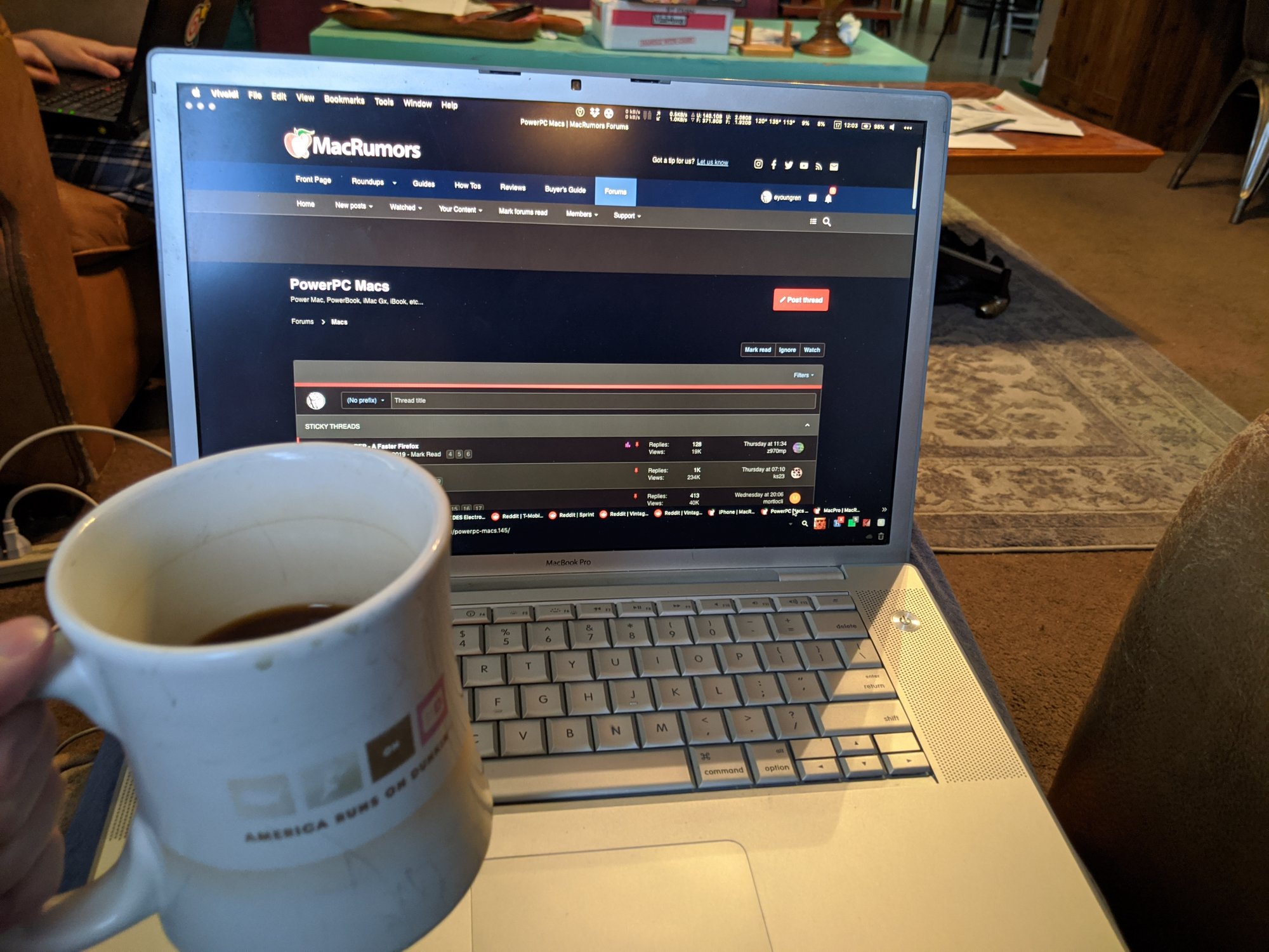 My first post here! This was this morning, after making coffee for the wife and I. I'm back in business now the PowerBook G4 17-inch is all maxed out and I have a new charger for it. Coffee wise I had some Marley brand made in a French Press, I was a bit disappointed really. I usually use our espresso machine but despite being marketed as "espresso" it was a super-coarse grind so I had to make it in the press. Shame, really, as I was looking forward to a proper americano or just a doppio to go with this.