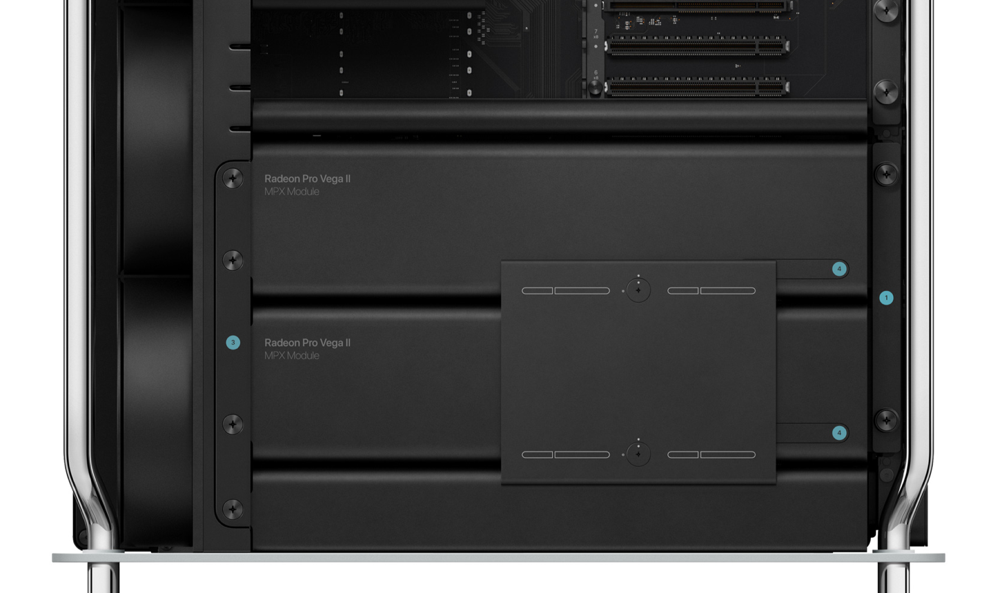 The MPX modules also all supply DisplayPort (DP) streams to the the TB ports on the Mac Pro. The XDR monitors do not necessarily have to be plugged into the ports directly on the card to hook the GPU display output to an XDR display.
