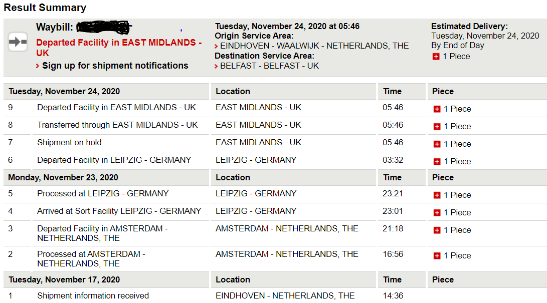 DHL or UPS?My last update was East Midlands at 2:53, given I’m in Nottingham I should receive it today.