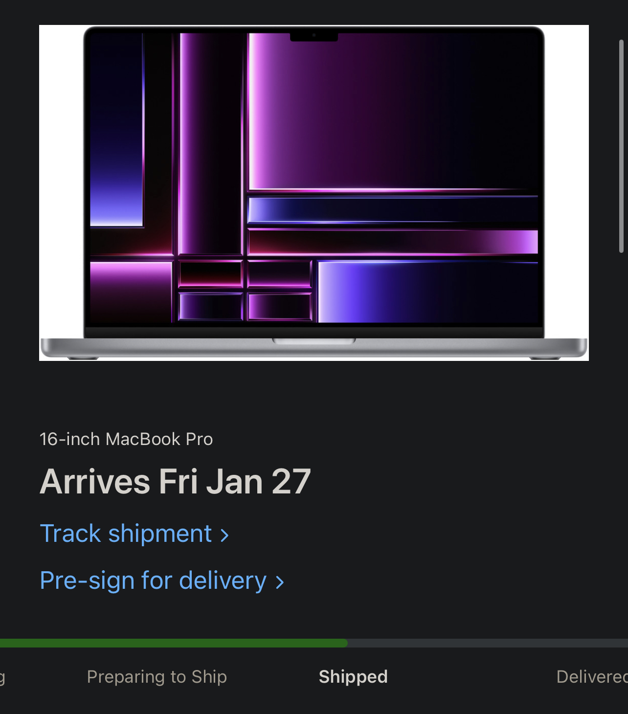 This is good advice for other people. Any tips others would like to suggest for pre-order threads that would helpful information for those who need it? Maybe I’ll look at previous pre-order threads from other older posts.Ordered a 14" M2 Max / 96GB on launch day, Jan 17th. It has been "Preparing to Ship" for a couple of days. I called the Apple Customer Support to see if they could give me any additional specifics on shipping. They said it was in the US and my status should change relatively soon with a tracking number.