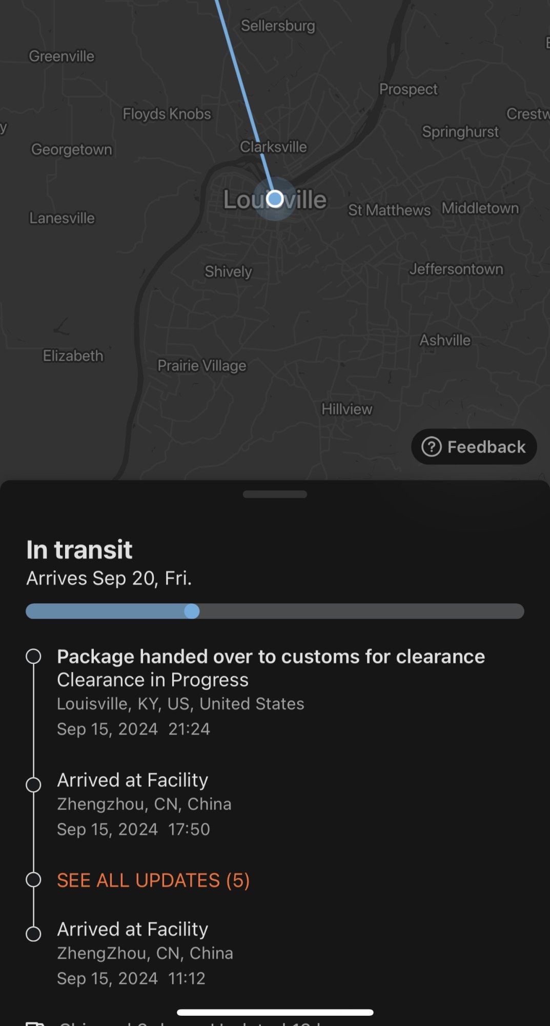 Do you already have the Incheon, KR & Anchorage scans? I believe the customs scan appears ahead of time before landing in Louisville as preliminary notification of clearing customs. You're Wave 1 I believe, and you should merge with Wave 2 before arriving in Louisville and we haven't left ZhengZhou CN yet.