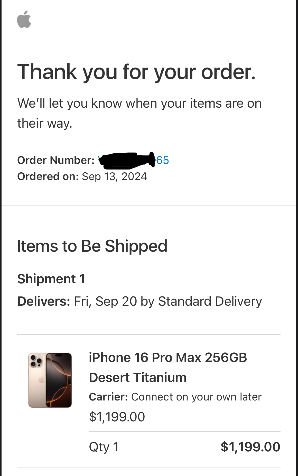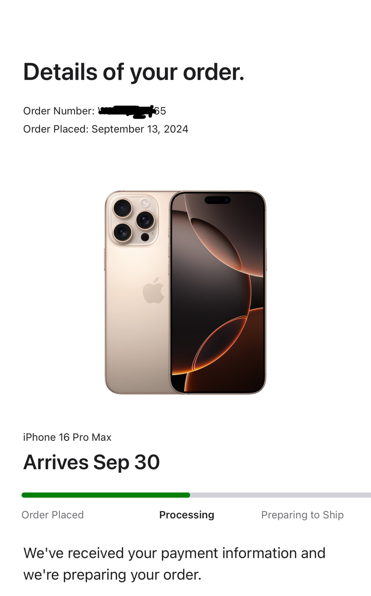 Preordered 2 Pro Maxes on launch day just when the Apple Store went up. Both originally got a September 20th delivery date, including in the order confirmation emails. Today however, I checked my orders in the app and while the first iPhone is on "preparing to ship" with a Sep 20th delivery date still, the second iPhone is still processing but now has a September 30th delivery date. I received no email update from Apple regarding a delivery estimate update.