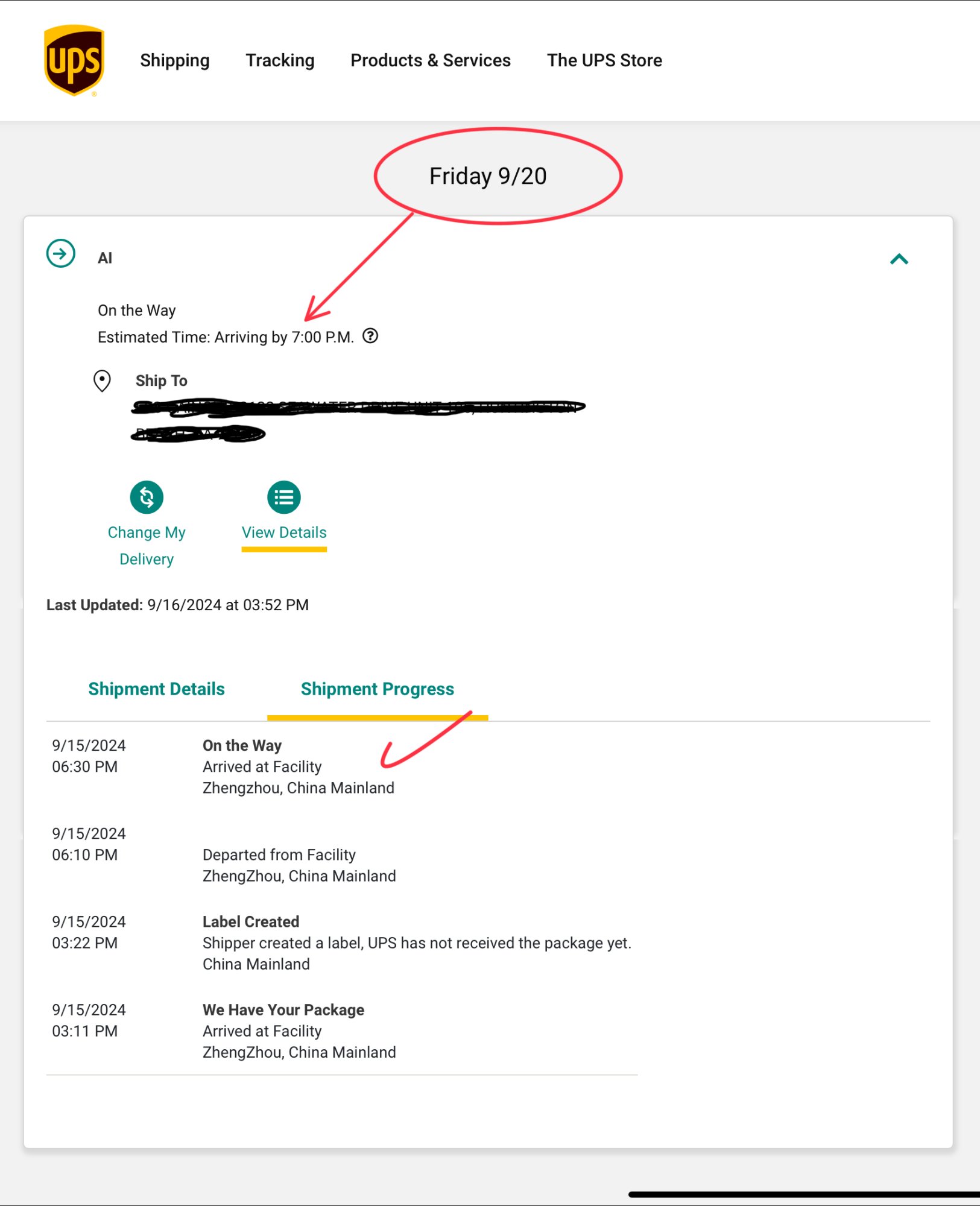However, I can’t find my Ultra 2 Black Titanium on the UPS site (yet), although it—too—shows a Friday the 20th delivery on the Apple Store site.